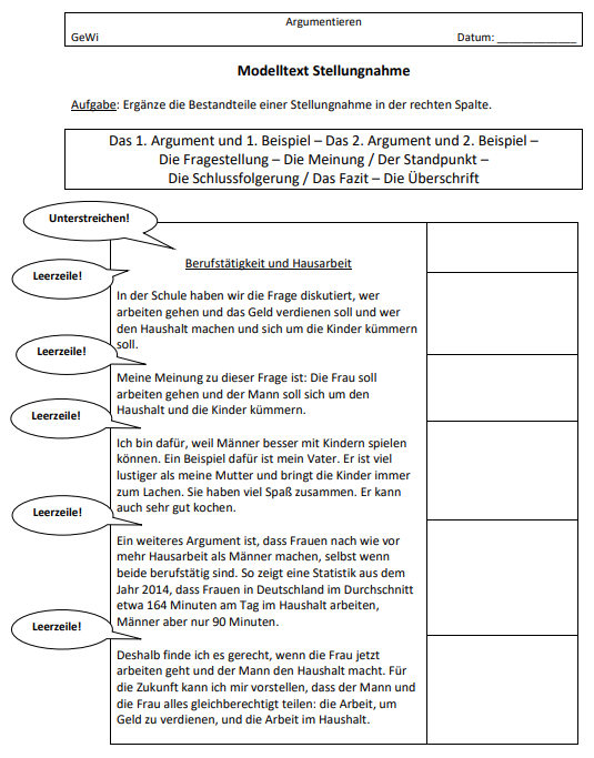 Lehrkraft konzipierten Modelltext (z.B. eine einfach